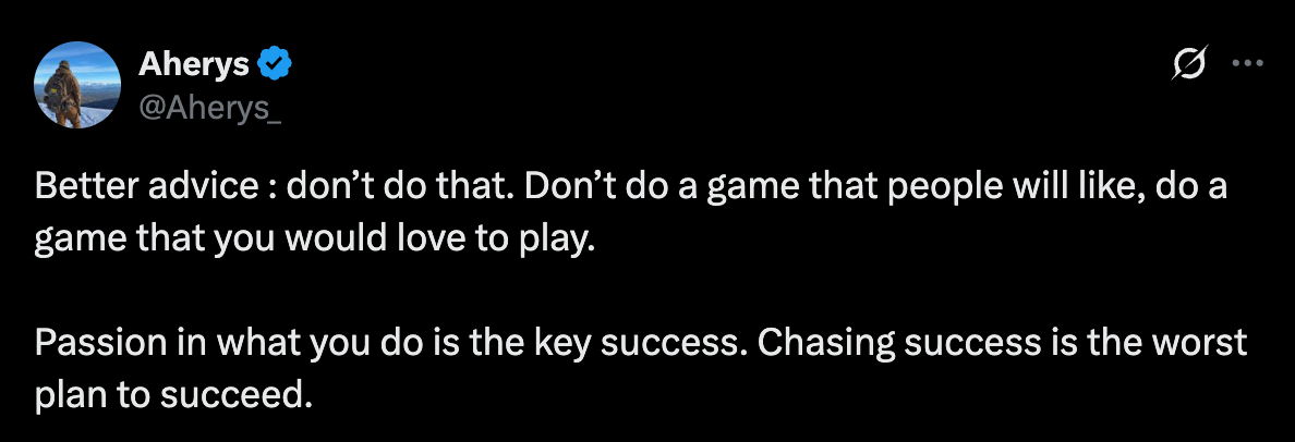The most recent example of this can be seen in the countless replies to a relatively innocuous post on X by indie developer and aspiring influencer Gorka Games. In this post, the OP argued that solo developers shouldn’t make big open world games and instead should make games in trending genres like friendslop. The post went viral, with developers eagerly filing in to give their take on why Gorka’s advice was bad and offensive. Their takes ranged from thoughtful to somewhat incensed. Well… mostly incensed. Here’s a few: